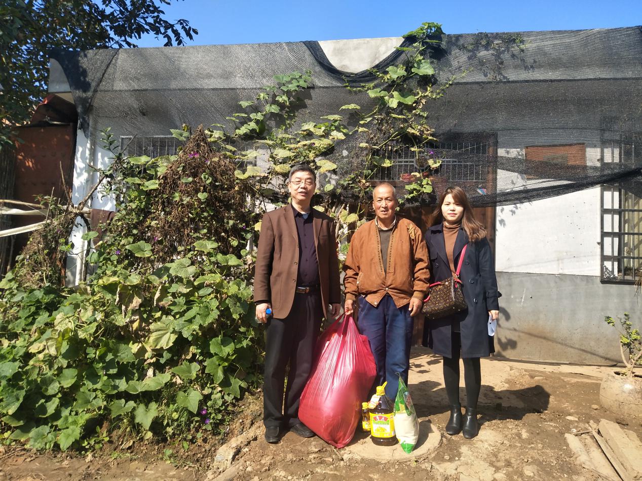 公司董事長(zhǎng)王長(zhǎng)隨和工會(huì)主席樊琳杰、黨務(wù)干部高曉莉來到貧困戶家慰問